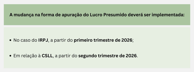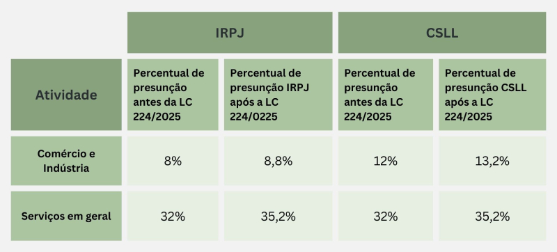 Confira o quadro com o comparativo dos percentuais de presunção, antes e após a LC 224/2025: