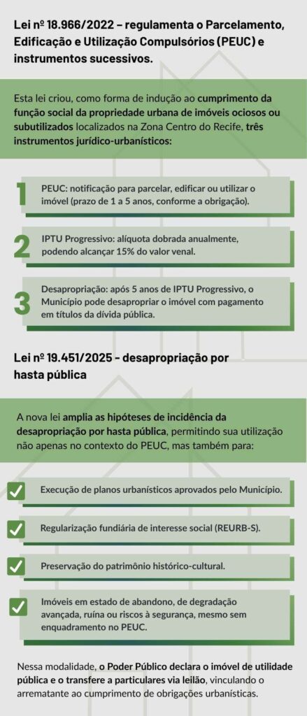 Proprietários de imóveis localizados nas áreas abrangidas, especialmente na Zona Centro do Recife, devem ficar atentos. O descumprimento da função social da propriedade pode resultar em aumento expressivo da carga tributária (IPTU progressivo) e, em última instância, na perda do imóvel por desapropriação.